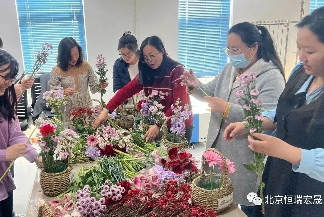 陽(yáng)春三月,花香四溢,為慶祝國(guó)際婦女節(jié),進(jìn)一步豐富女職工的精神文化生活,提高美學(xué)素養(yǎng),恒瑞宏晟組織女同胞們開(kāi)展以“與花相伴,綻放芳華”為主題的藝術(shù)插花活動(dòng)。辦公室花香濃郁,歡樂(lè)且溫馨。