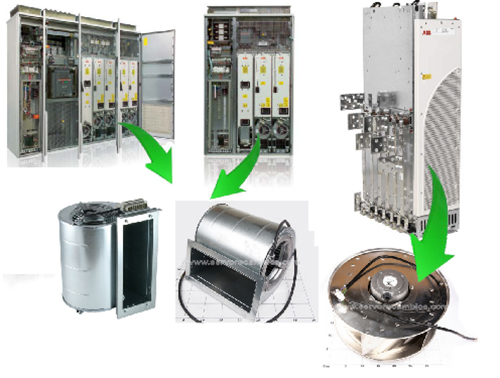變頻器底部的大風(fēng)扇是用來給變頻器的IGBT等大功率原件散熱的,小風(fēng)扇是用來給CPU板、驅(qū)動板、電源板等電子部分散熱。