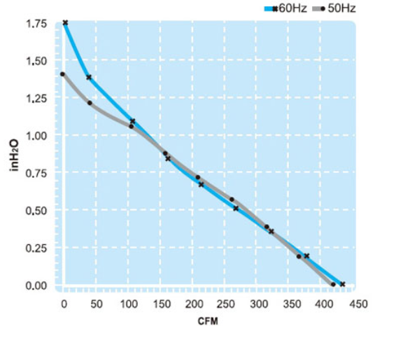 | Maximum Pressure | 1.4/1.8 InchH2O | 1.4/1.8 InchH2O | |