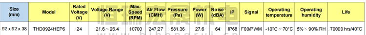 92*92*38mm 臺達Delta風機參數(shù)表